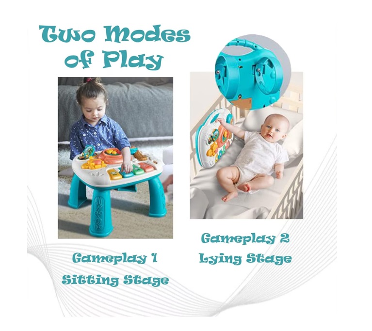 * Aceasta masuta cu diferite activitati il vor determina pe bebe sa se joace, sa se distreze, dar mai ales sa-si coordoneze miscarile mult mai bine.