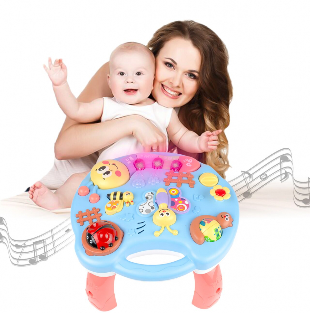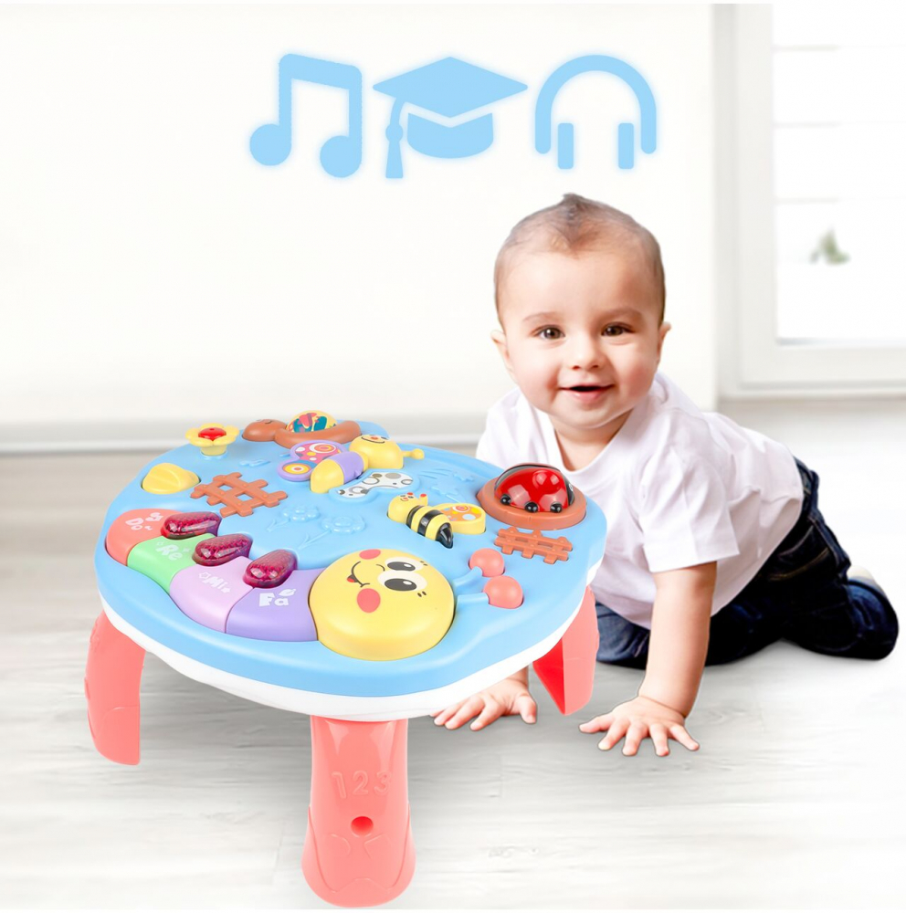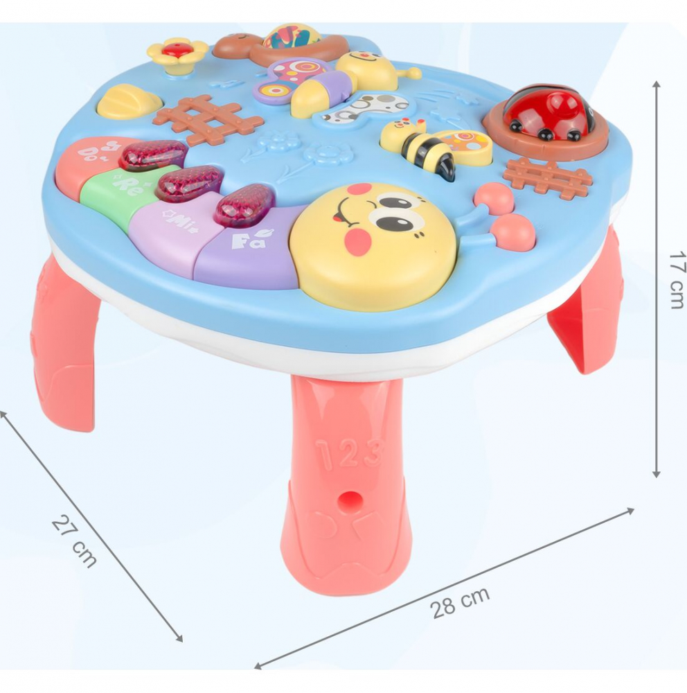 * Masa noastră interactivă are multe elemente mobile și dezvoltă și îmbunătățește perfect abilitățile manuale și motorii ale copilului.