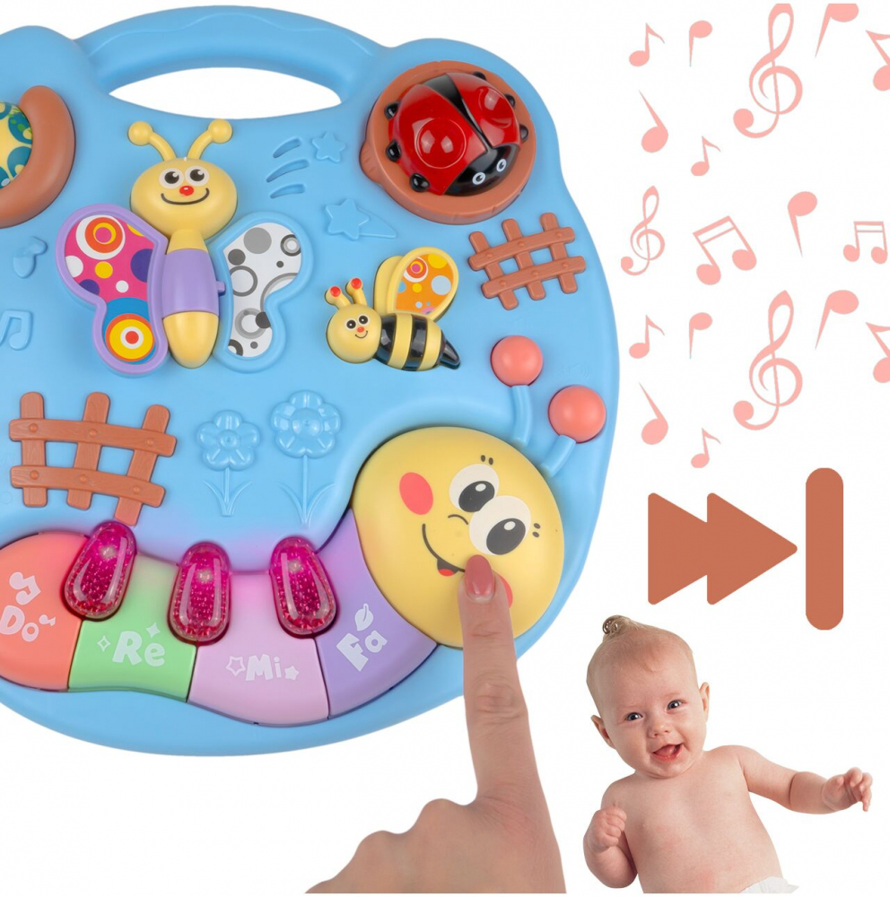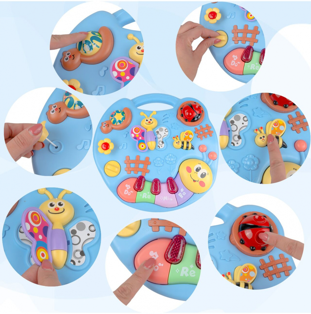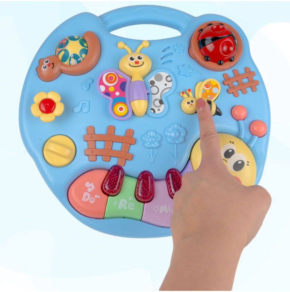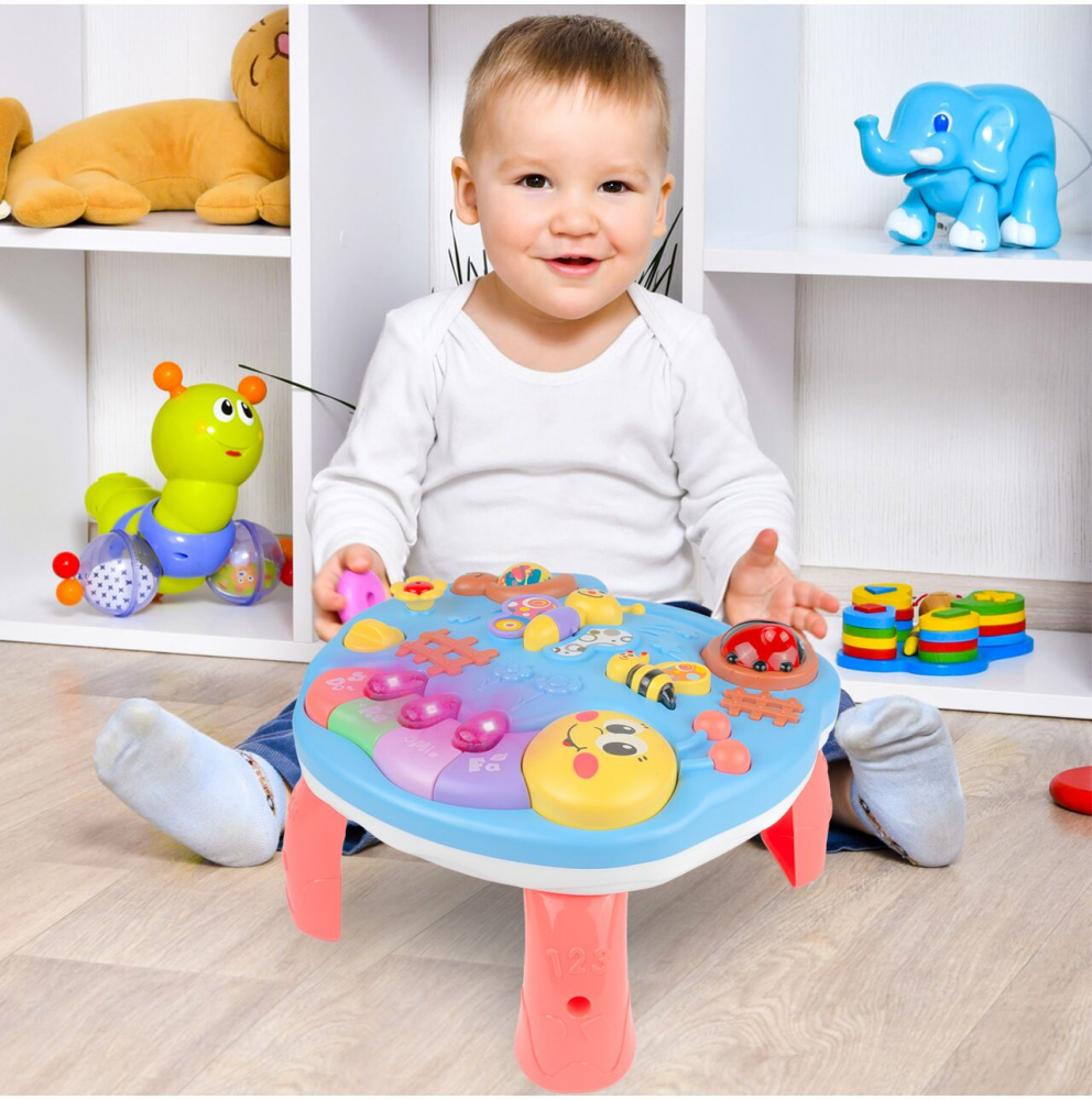 * Masa noastră interactivă are multe elemente mobile și dezvoltă și îmbunătățește perfect abilitățile manuale și motorii ale copilului.