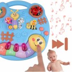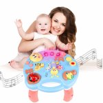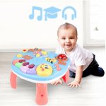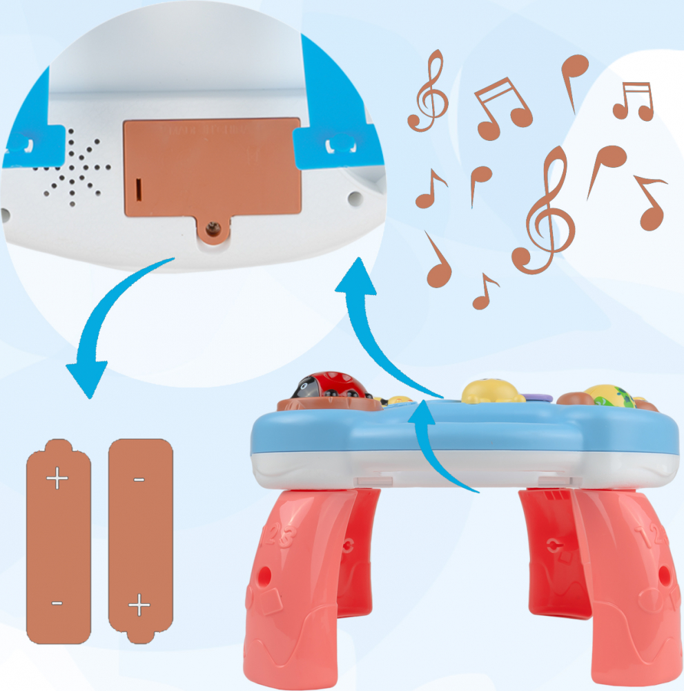 * Datorită amenajării diferitelor elemente pe suprafața mesei, copiii noștri le pot pune cu ușurință în mișcare, care este însoțită de diverse sunete și melodii interesante.