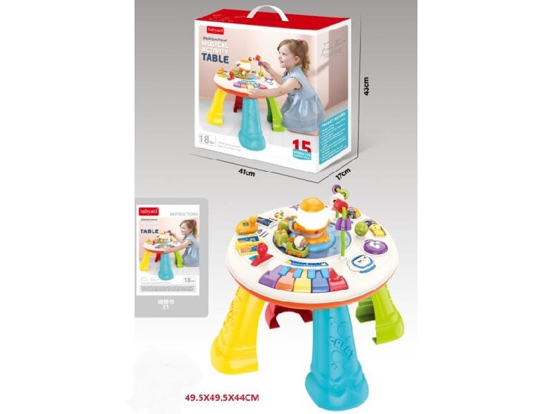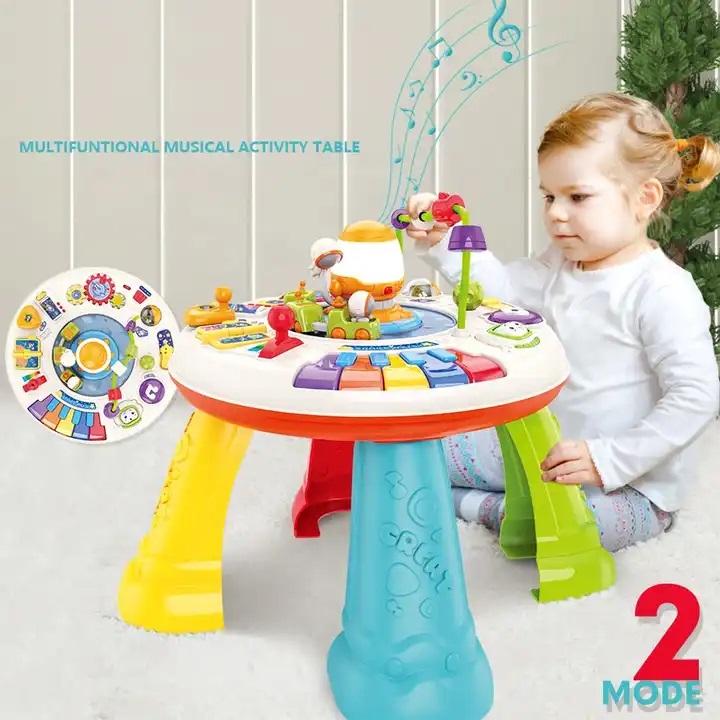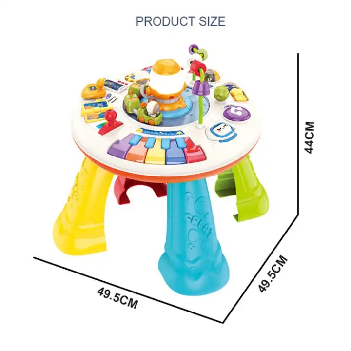 Jocuri multiple: Masuta are un pian cu clape colorate si diverse alte activitati interactive, care vor mentine atentia copilului si ii vor incuraja creativitatea.