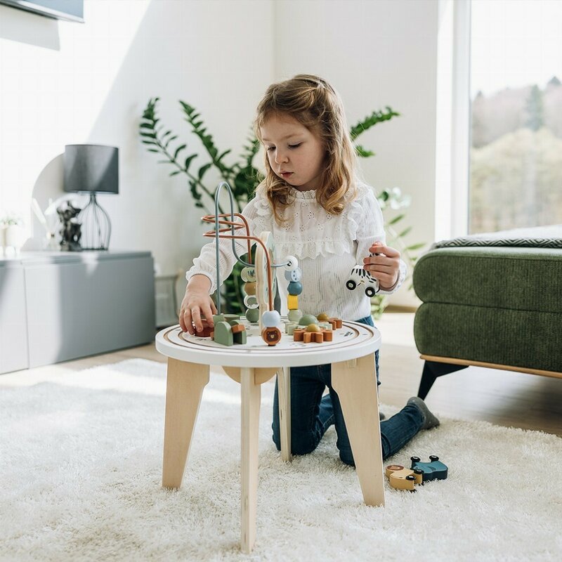Masuta Montessori cu activitati, Free2Play, Cu multiple activitati, Dezvolta coordonarea ochi-mana, Din lemn, 18 luni+, Think and Play