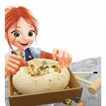 Gasiti cei patru dinozauri in timp ce sapati in oul gigant: Tyrannosaurus, Diplodocus, Stegosaurus si Styracosaurus. Setul include instrumente pentru sapat si o tava pentru a reduce murdaria.