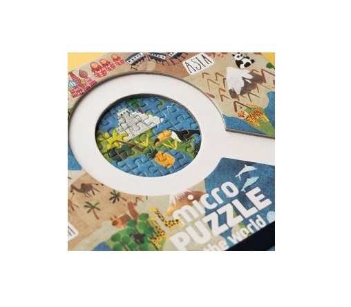 Puzzle cu 600 de piese de foarte mici dimensiuni. Imaginea finală redă harta lumii, având dimensiunea de 20 x 30 cm.
