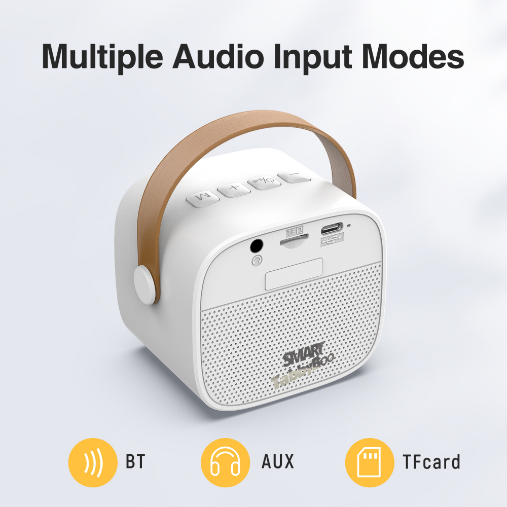 Microfon karaoke copii/adulti SMART TabbyBoo MK1 cu difuzor separat microfon wireless portabil MP3 microSD card bluetooth white