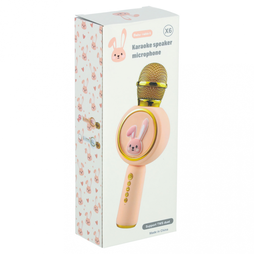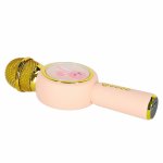 Microfon wireless de karaoke pentru copii Ikonka, cu lumina, cablu USB, MP3, model pink Rabbit