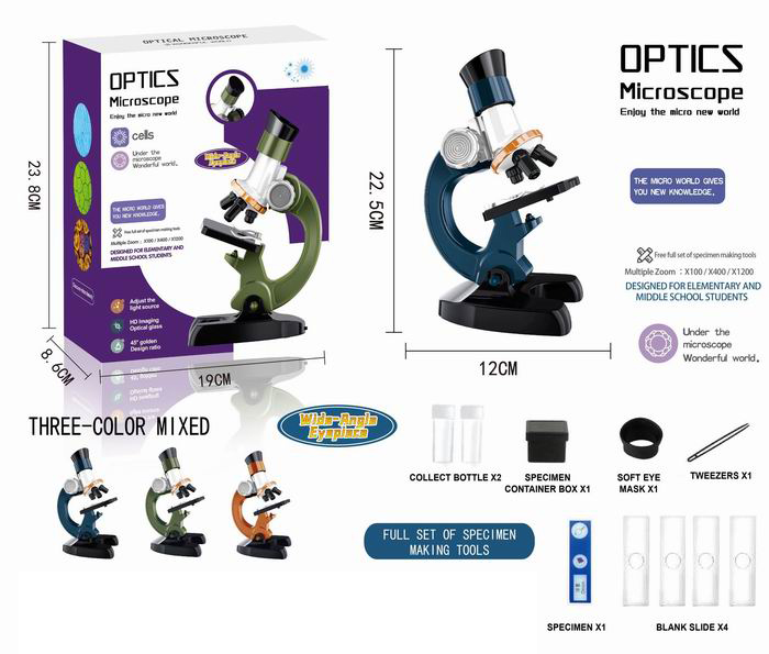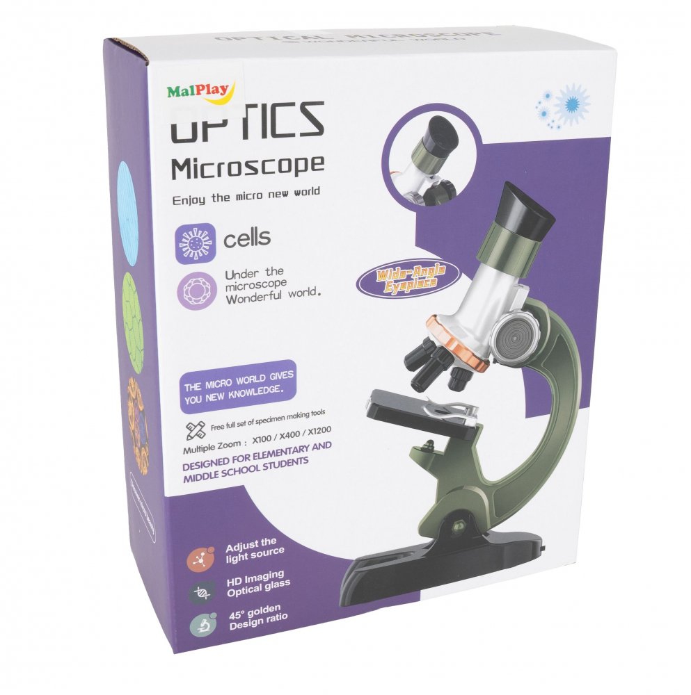 * Are o inaltime reglabila a lentilei si 3 moduri de marire: 1200x, 400x si 100x. Dimensiunile de marire pot fi modificate liber. Obiectele care sunt vizualizate sunt plasate pe o platforma speciala integrata cu microscopul.