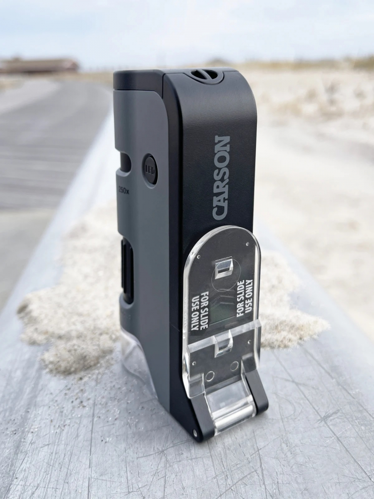 MicroFlip™ 100x-250x, microscop de buzunar iluminat cu LED-uri și lumină UV, cu bază rabatabilă și clips pentru digiscoping cu smartphone MP-250, este un microscop de buzunar extrem de puternic, cu iluminare LED, care conține o bază unică rabatabilă cu lentilă asferică pentru calitatea ultra precisă a imaginii.