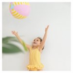 - Mingea de plaja are un aspect clasic si vine in nuante luminoase de roz si galben.