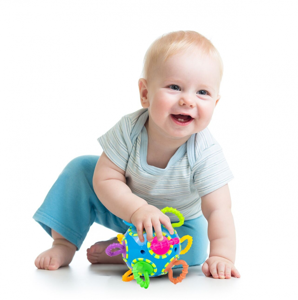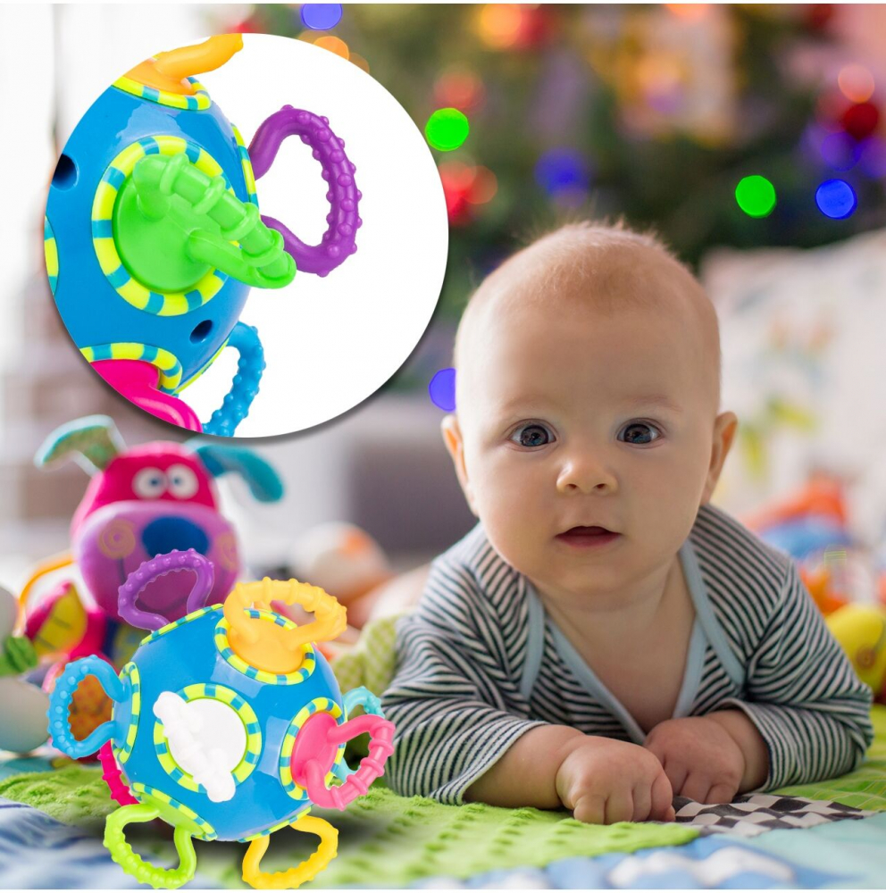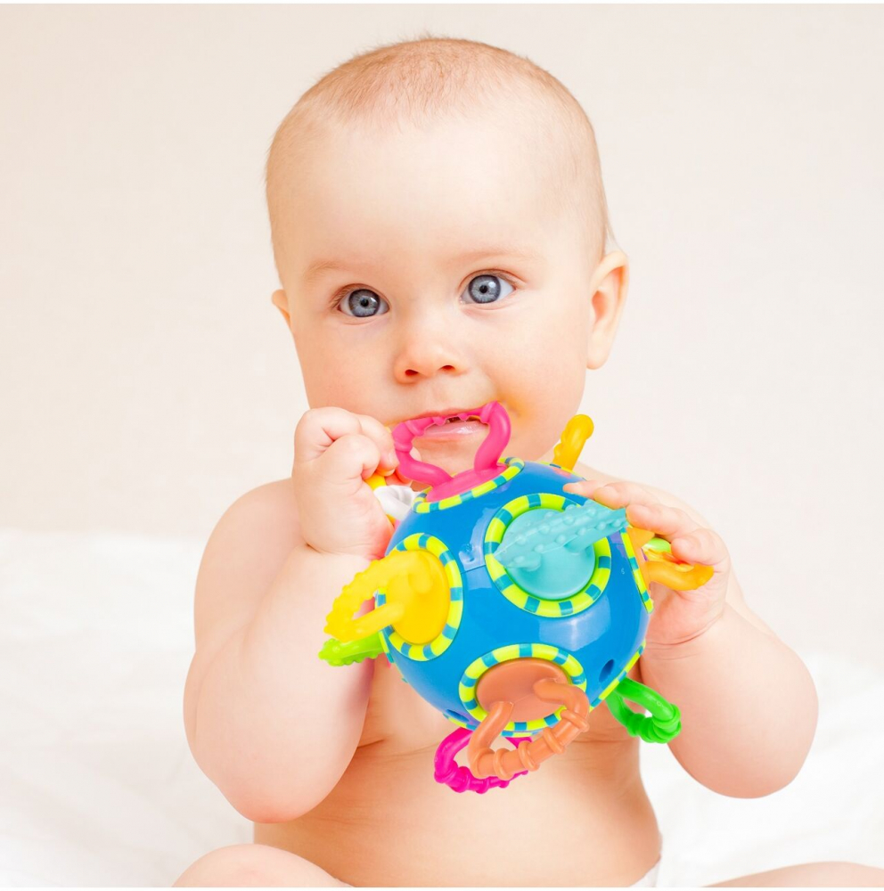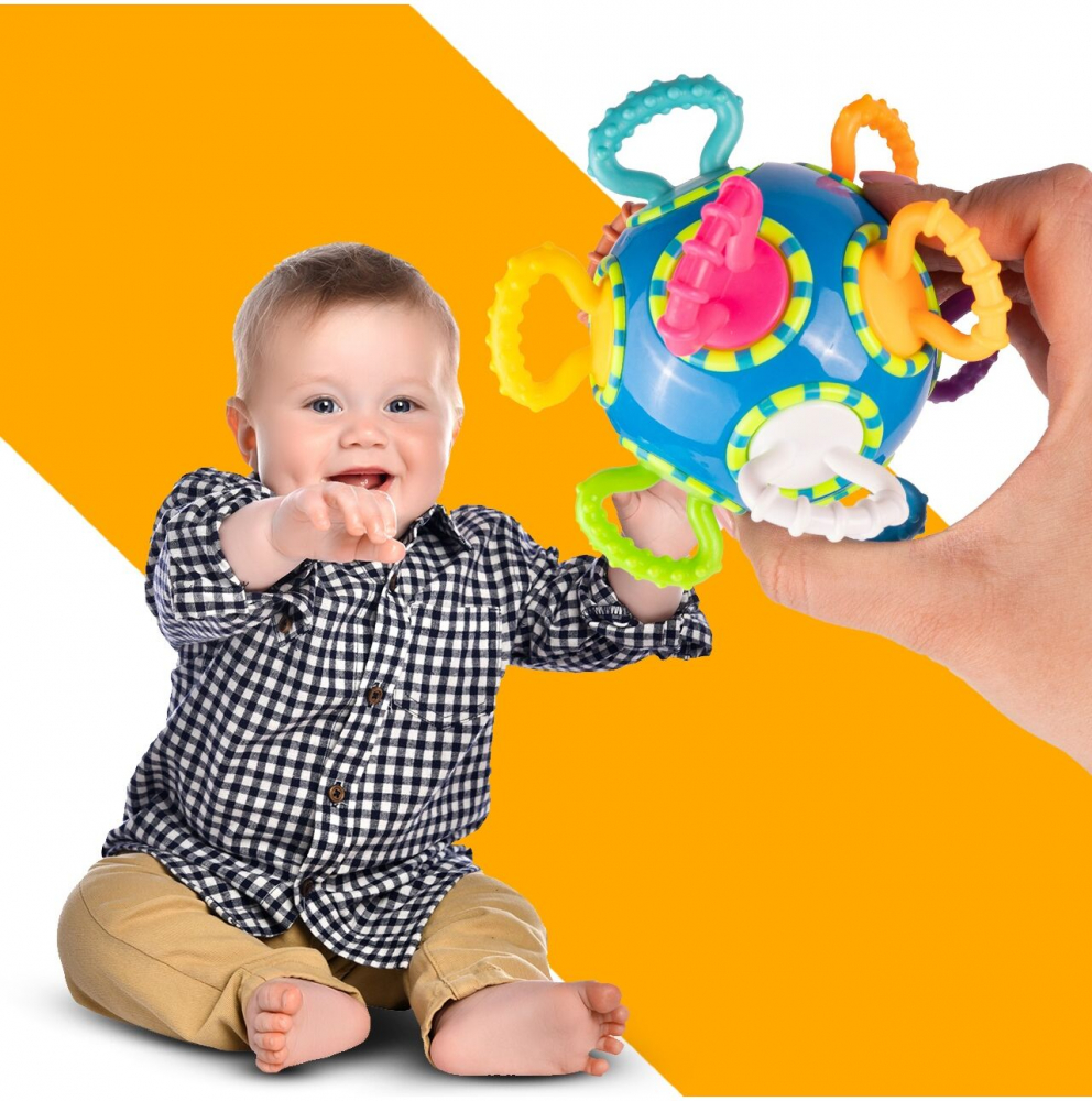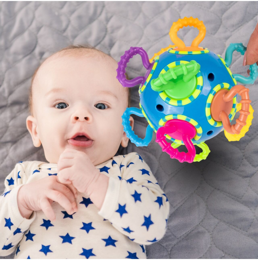 - In al doilea rand, mingea emite sunete ca un zdranganit atunci cand este scuturata , ceea ce il va interesa pe copil si il va incuraja sa se joace.