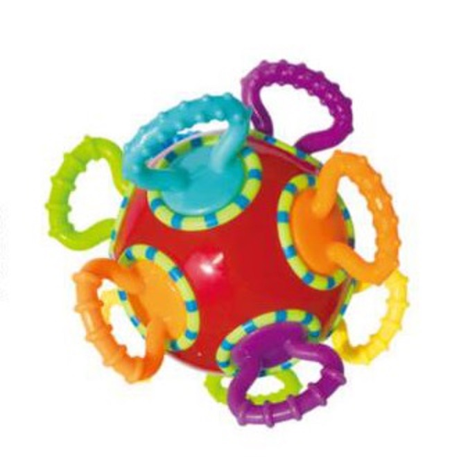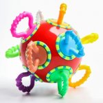 - In al doilea rand, mingea emite sunete ca un zdranganit atunci cand este scuturata , ceea ce il va interesa pe copil si il va incuraja sa se joace.