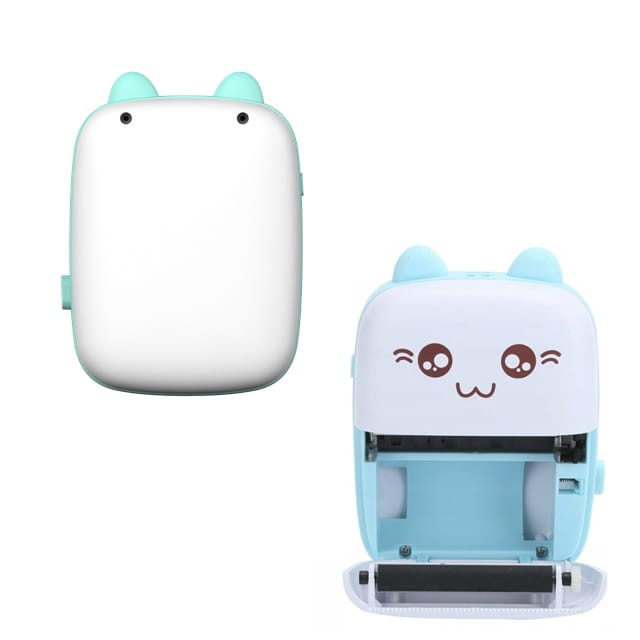 Mini imprimanta termica pentru copii pisoi Albastru cu 1 rola termica + 3 role autoadezive