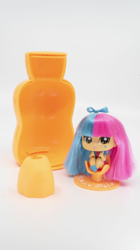 Contine: 1 mini papusa cu par coafabil, 1 capsula sub forma de sticla, 1 scaun pentru coafat, 1 ventuza, 1 pelerina pentru coafat, 1 ghid colector.