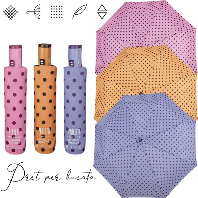 Mini umbrela de ploaie cu inchidere-deschidere automata, model cu buline