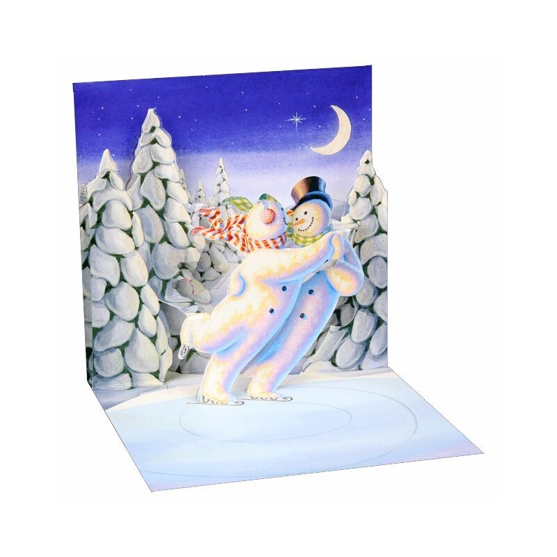 Minifelicitare 3D Craciun - Oameni de zapada patinand