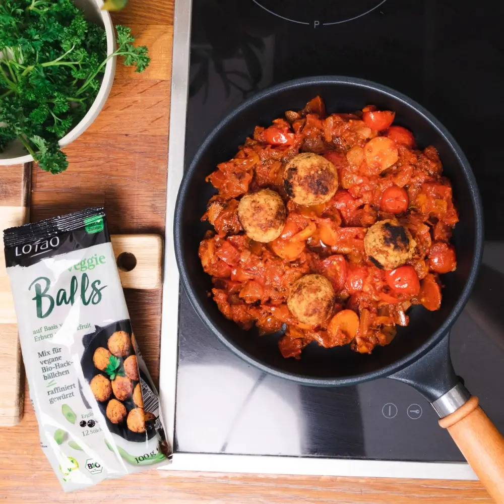 Mixul Lotao pentru chiftele vegane impresioneaza prin calitatea organica si este deja perfect condimentat.