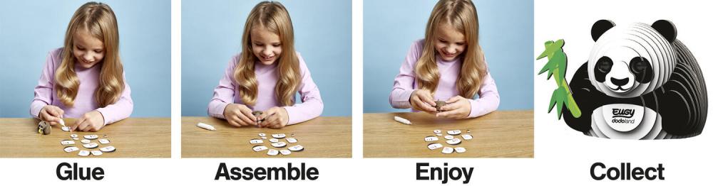 Setul include: carduri care contin piese pentru construirea ursuletului panda 2 ochi un betisor din carton (pentru montaj) 1 lipici instructiuni.