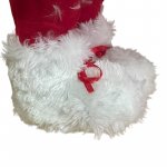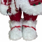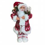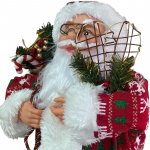 Inaltimea totala a figurinei este de 60 cm, este confectionata din plastic si material textil placut la atingere, intr-o combinatie de rosu, blanita alba si imprimeu cu motive specifice: reni si brazi. Imbracamintea, caciula cu clopotel, ochelarii si saculetul cu cadouri sunt accesorii suplimentare care ofera un aspect realist figurinei.
