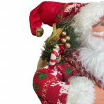Mos craciun 60 cm, figurina decorativa, saculet cadouri, caciula cu clopotel