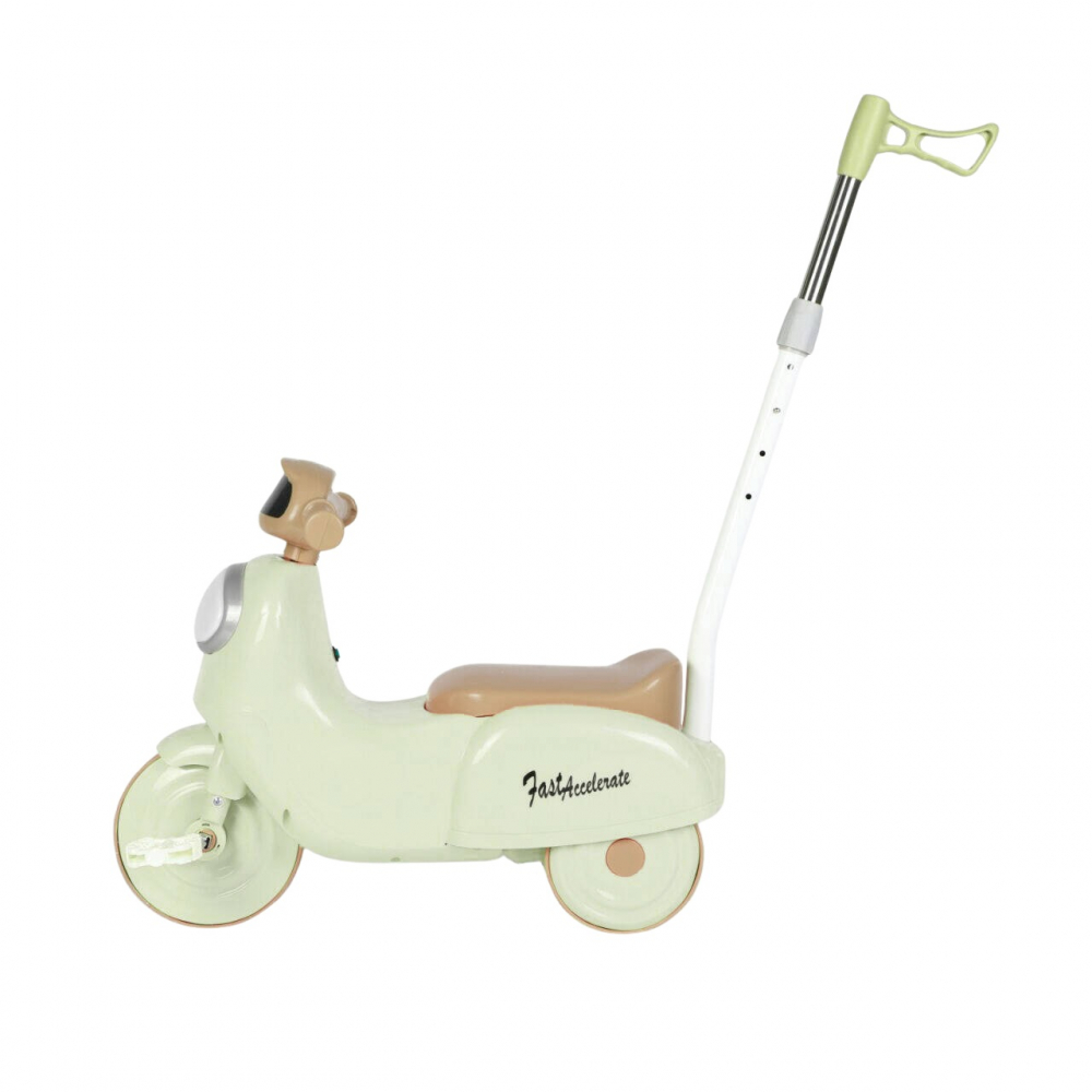 Motocicleta cu pedale pentru copii Nichiduta 3in1 Fast Green cu maner parental detasabil,far cu lumina LED,muzica,spatiu de depozitare,structura stabila,sistem antirasturnare,roti rezistente,unghi de viraj limitat