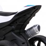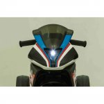 Motocicleta electrica pentru copii BMW HP4 albastru 70w cu panou audio, lumini, scaun piele, 81x41x52 cm