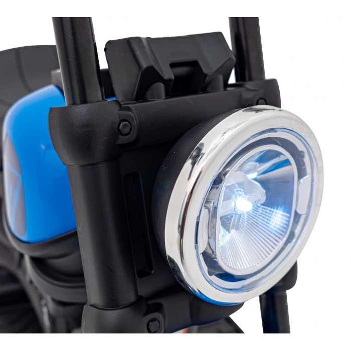 Motocicleta electrica pentru copii Chopper Faster AHL008 78x30x55 cm albastru 20W cu lumini, panou audio si indicator incarcare