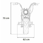 Scaunul, confectionat din piele ecologica, masoara 29x52x19 cm, oferind un spatiu generos si confortabil pentru micul motociclist.
