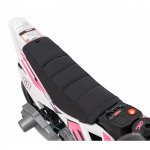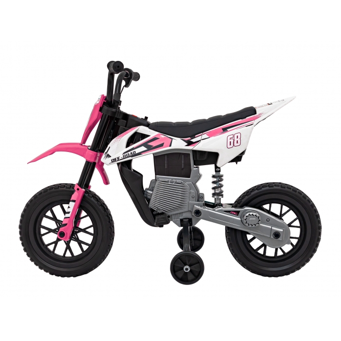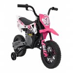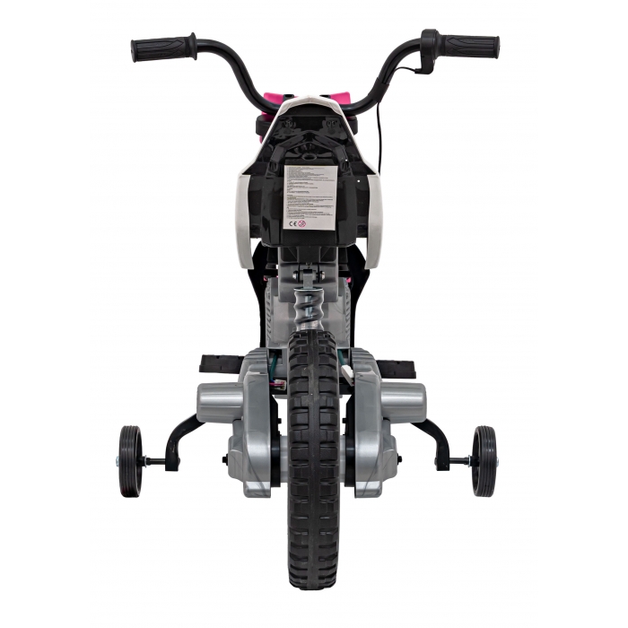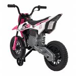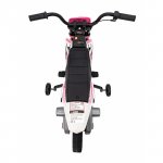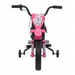Motocicleta electrica pentru copii Pantone roz 361C cu 2 roti ajutatoare, panou audio, pornire lenta, scaun piele si roti din spuma Eva, 108x59x72 cm
