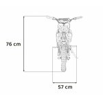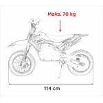Cu o garda la sol de 22 cm, motocicleta poate depasi cu usurinta mici obstacole, iar dimensiunile sale compacte (Lungime 114 cm, Latime 57 cm, Inaltime 76 cm) si greutatea de doar 30 kg o fac usor de manevrat de catre copii si de transportat de catre adulti. Sarcina maxima suportata este de 70 kg.