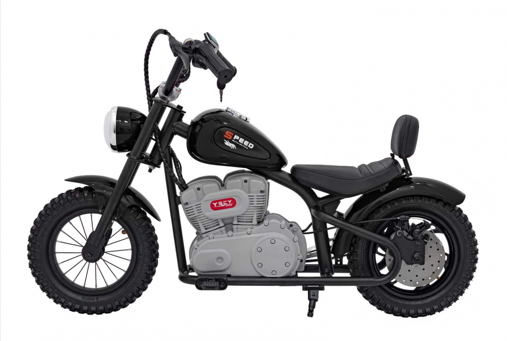 Motocicleta electrica pentru copii Speed Power Black, pornire la cheie, motor 250W, baterie 24V/7Ah, roti pneumatice, scaun ergonomic din piele, lumina frontala LED, claxon, muzica preinstalata, pana la 80 kg