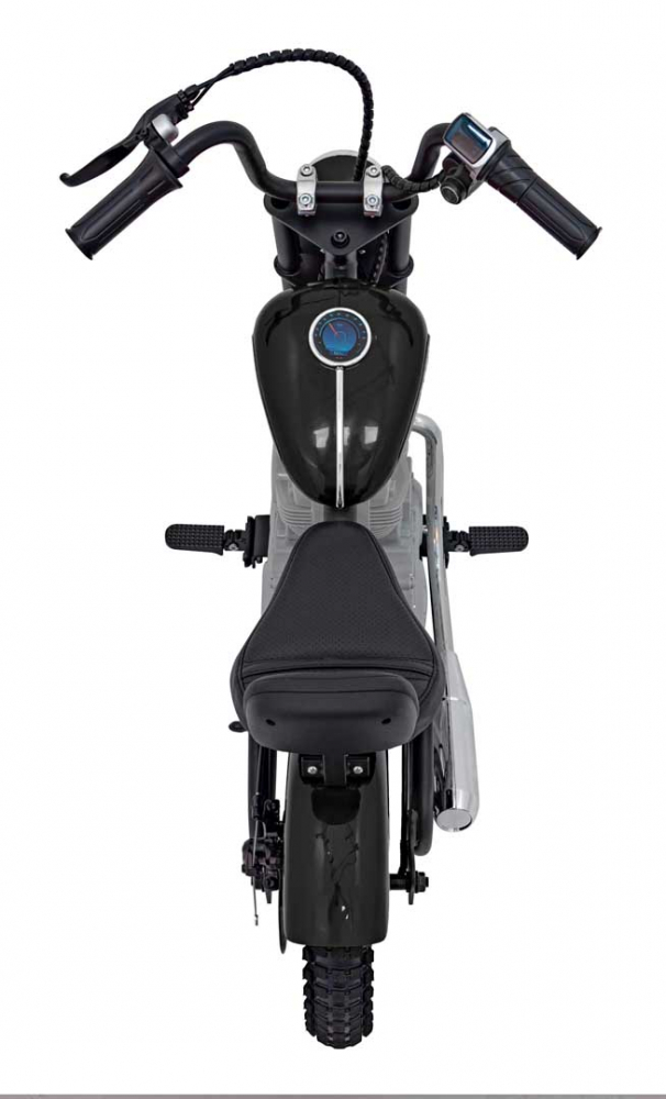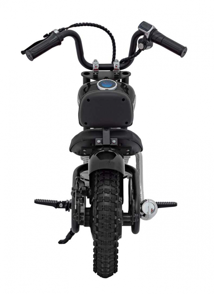 Cu o lungime de 105 cm, o latime de 51 cm si o inaltime de 70 cm, aceasta motocicleta are o prezenta impunatoare, fiind totodata perfect echilibrata pentru tinerii piloti.