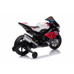 Motocicleta electrica pentru cpoii BMW HP4 Red 12V 90W cu scaun din piele, sezut confortabil, roti ajutatoare si efecte sonore
