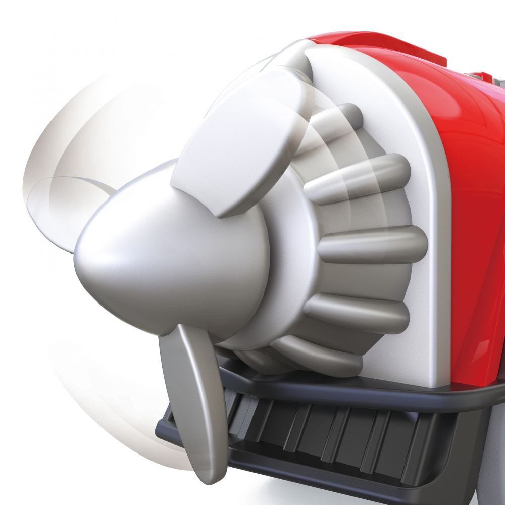 Acest motor cu elice are trei setari de viteza, inainte, inapoi si roata libera, permitand diferite moduri de joc.