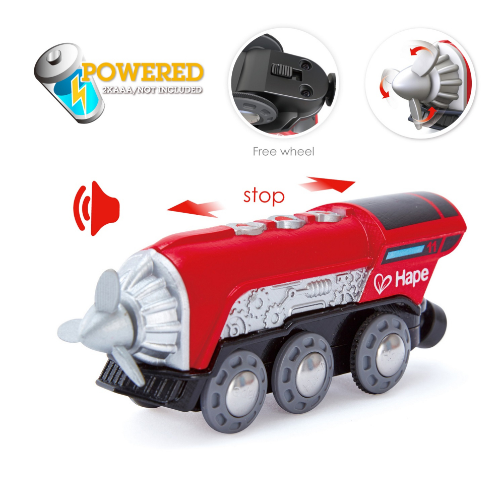 Aceasta jucarie distractiva combina atat elementele unui tren, cat si ale unui avion.