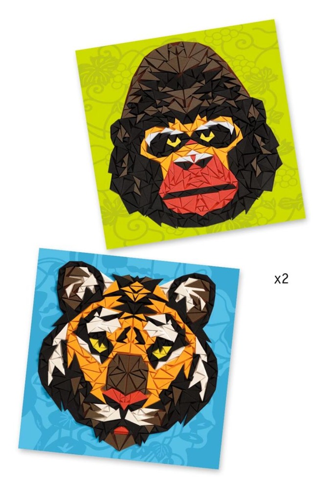Setul conține 2 planșe ilustrate, bucățele pretăiate în format triunghiular de burete colorat, manual cu instrucțiuni prin imagini, pas cu pas.