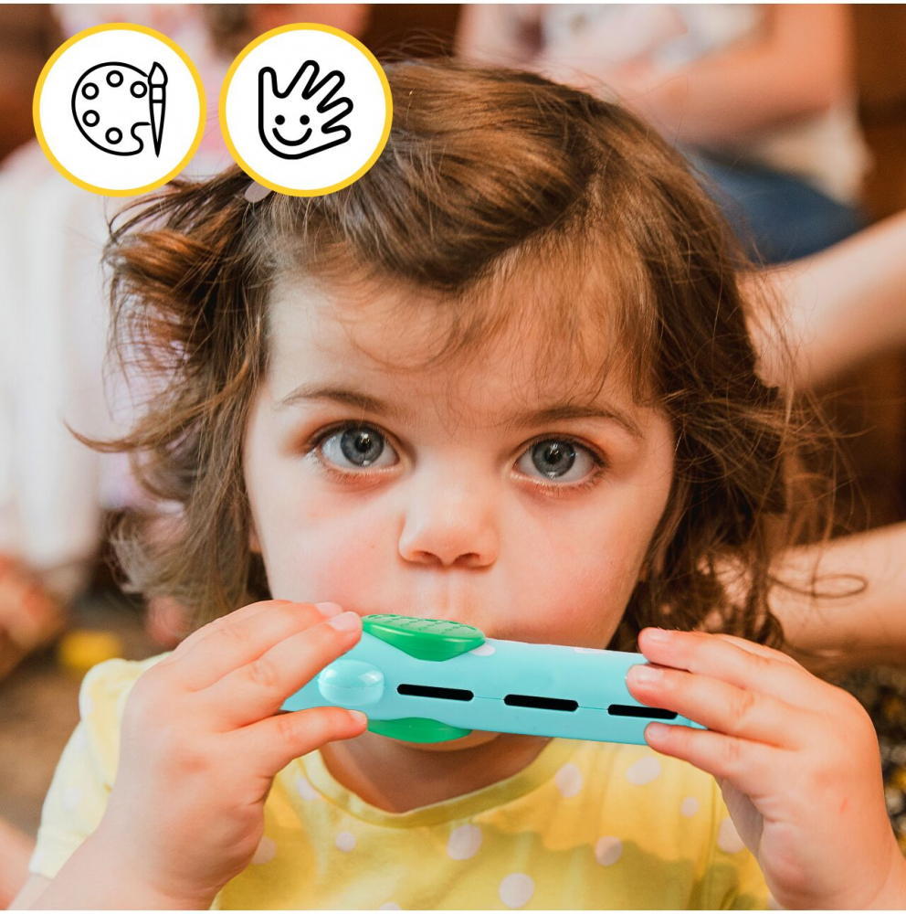 - Design sigur si ergonomic. Muzicuta este conceputa pentru a fi sigura pentru copii, cu margini rotunjite si fara elemente ascutite.