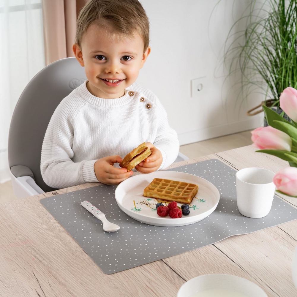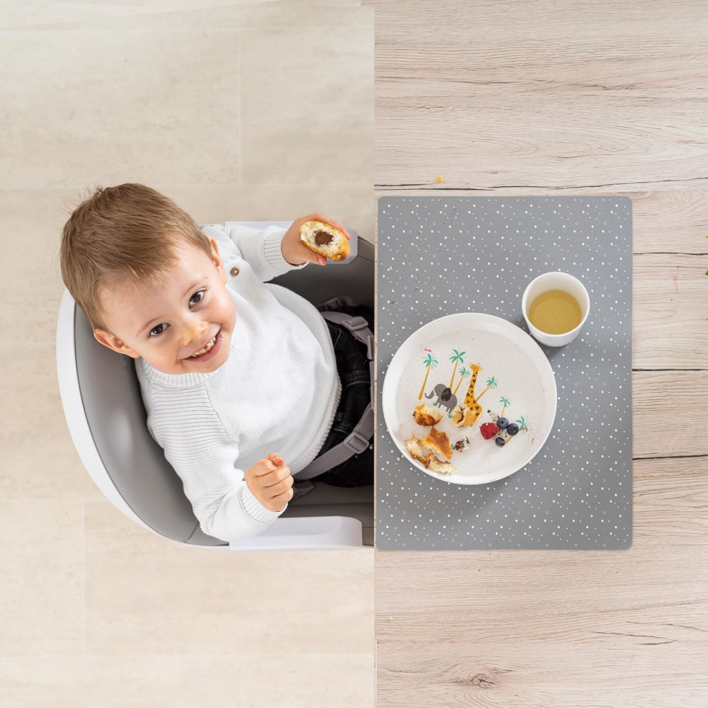 Mai multa relaxare in timpul mesei! Copiii sunt energici si pusi pe distractie si in timpul mesei, iar micile incidente, desi sunt amuzante, necesita curatare imediata sau lasa in urma lor pete inestetice. Suportul de farfurii Eat'n Tidy este ajutorul tau de incredere atunci cand vine vorba de a proteja masa de murdarie si deteriorari. Previne ca alimentele, sucurile sau bauturile calde care s-au varsat sa lase pete permanente pe masa.