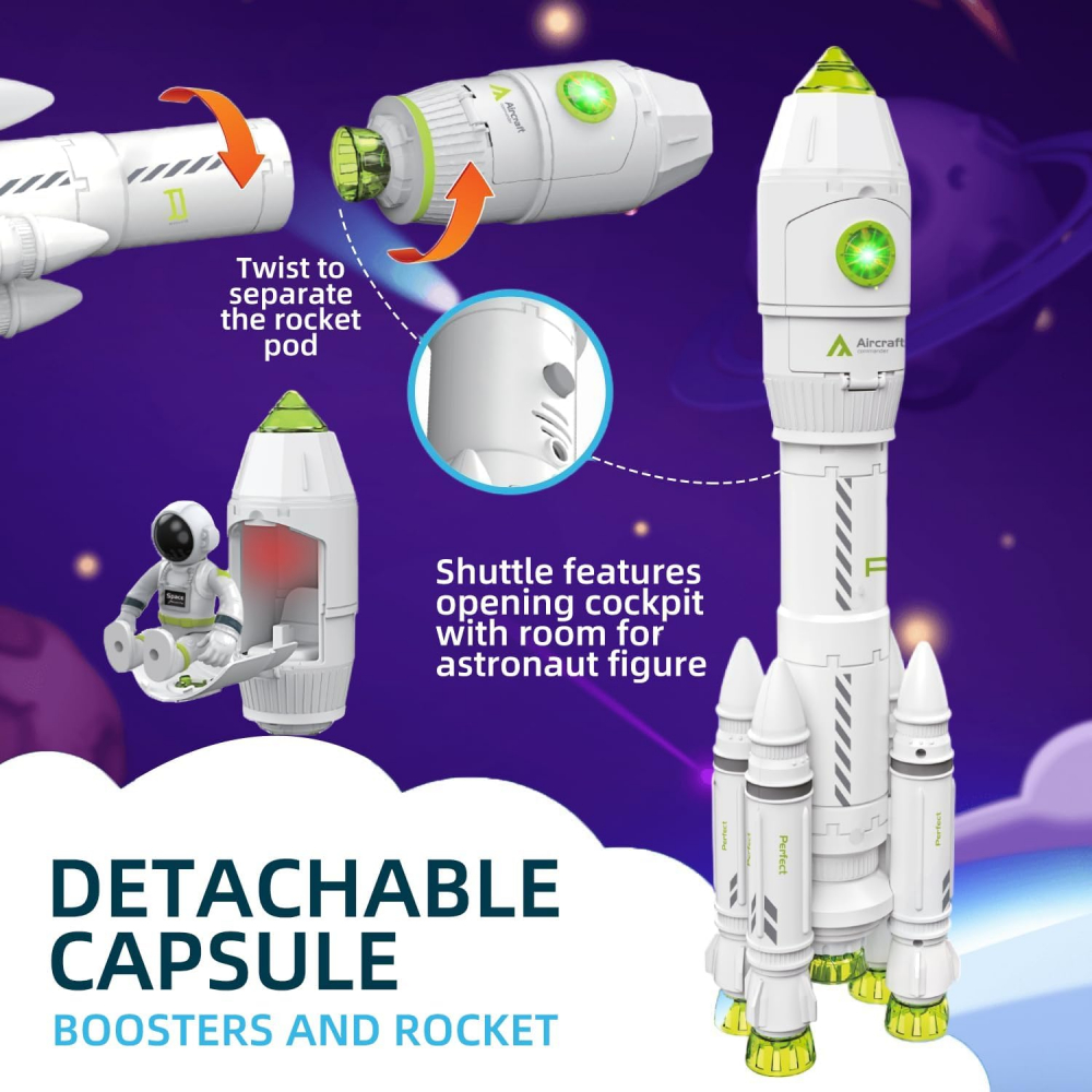 Un mic fan al spatiului si astronomiei va fi incantat de aceasta jucarie extraordinara! O racheta spatiala interactiva este un adevarat rasfat pentru copiii fascinati de spatiu, misiunile astronautilor si descoperirea secretelor Universului.