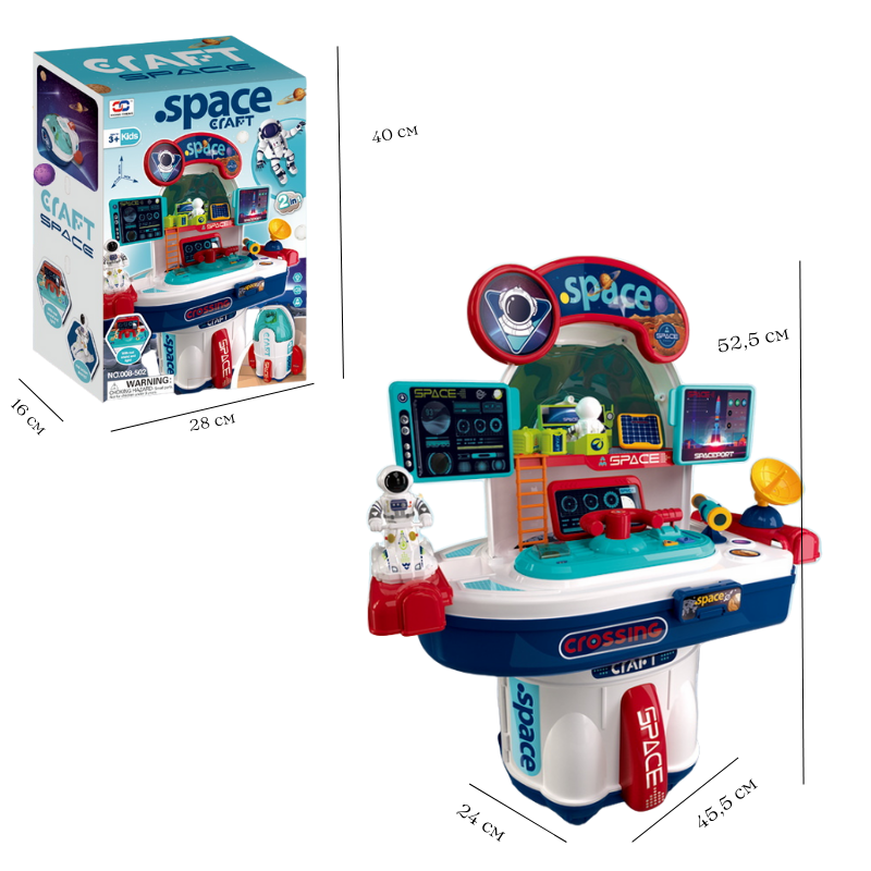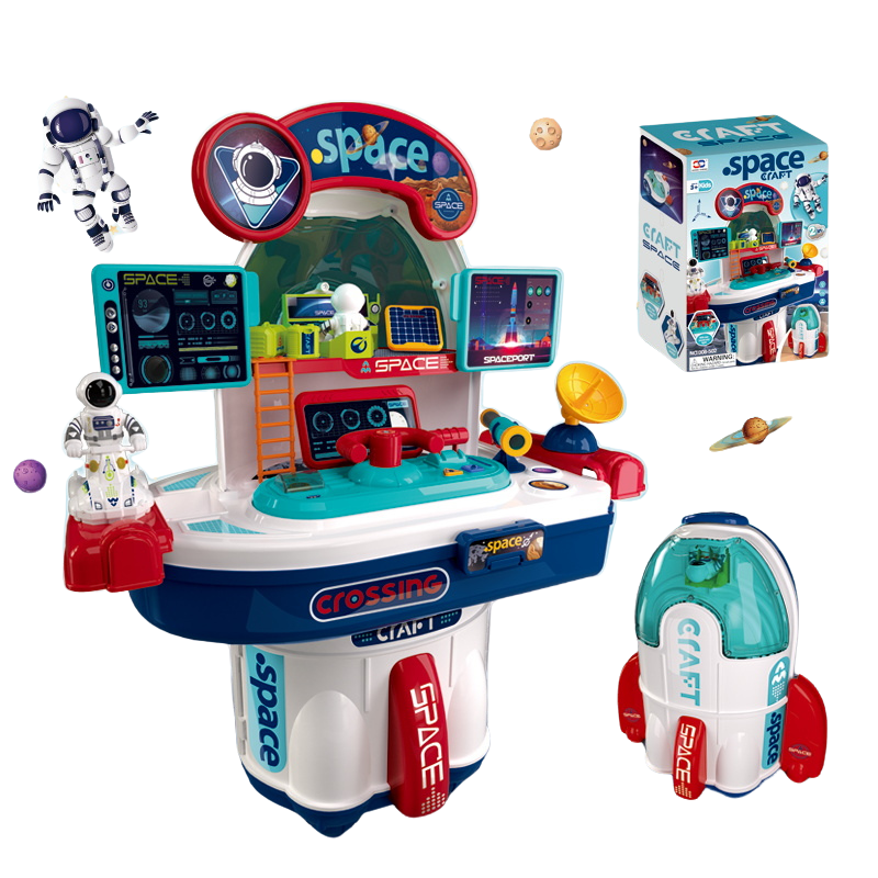 Setul contine un laborator spatial dotat, in care copilul se va simti ca un mic astronaut printre planete si galaxii si isi va controla propria nava spatiala!