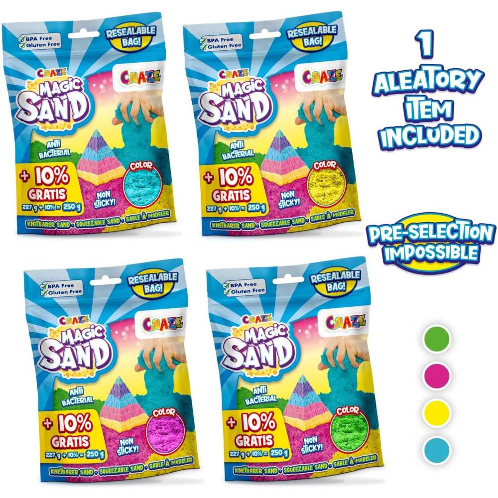 Pachetul Starter CRAZE MAGIC SAND contine aprox. 250g de nisip magic original intr-o punga de folie si este disponibil in 4 culori fantastice (turcoaz, roz, galben, verde).