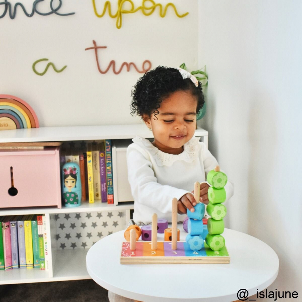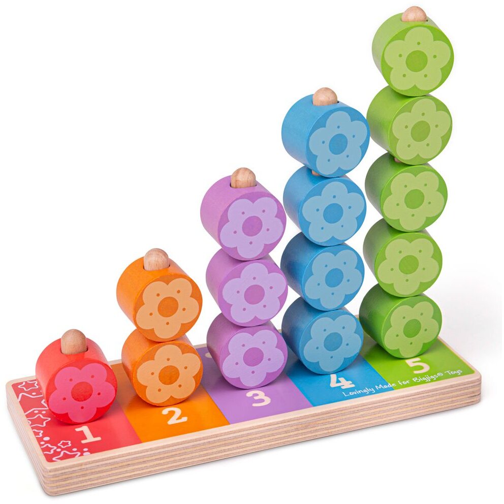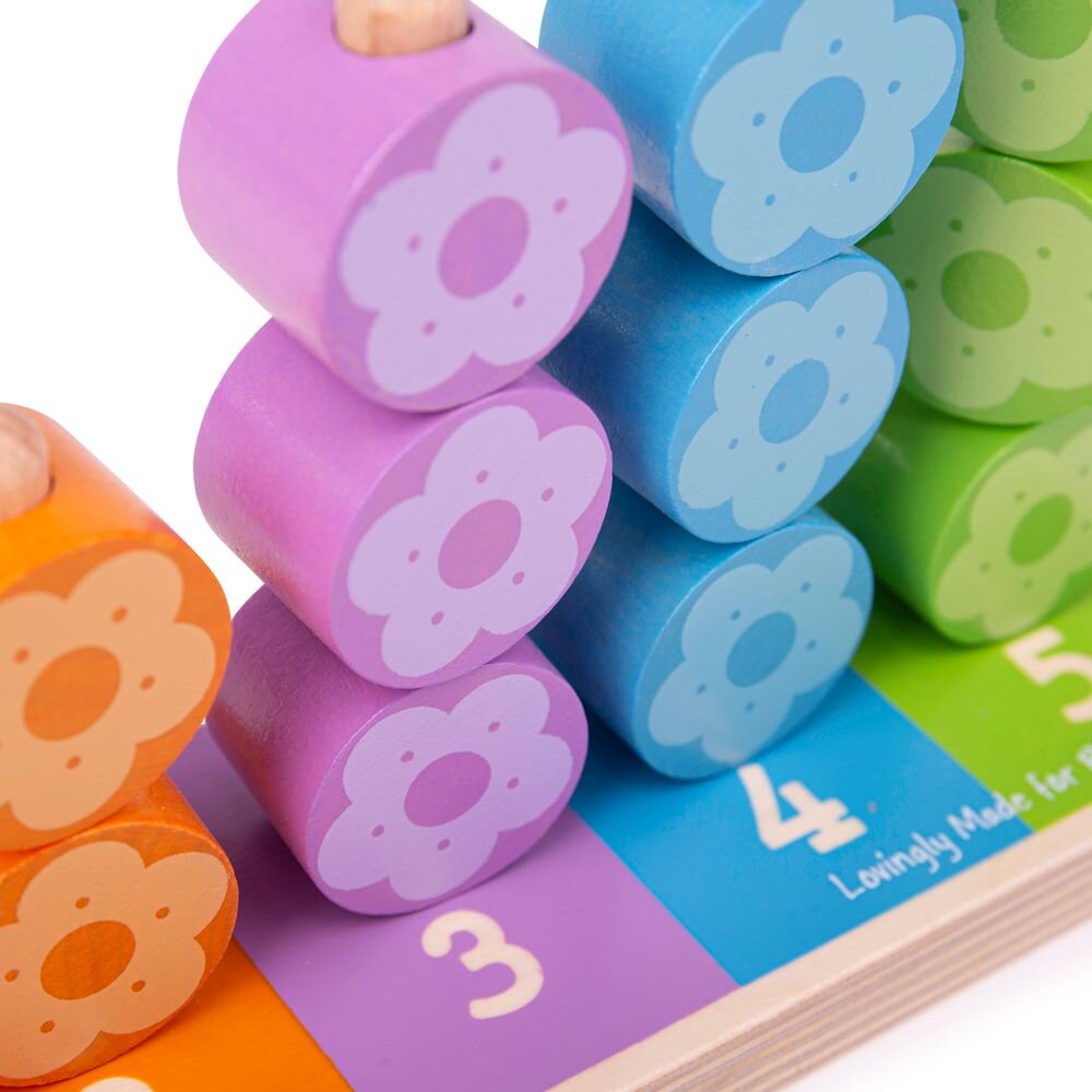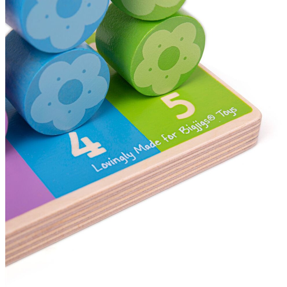 Numaratoarea are 5 tije verticale ce iti vor fi de mare ajutor la numarat dar si la sortarea florilor pe culori si asocierea cu numarul de bulinute corespondent.