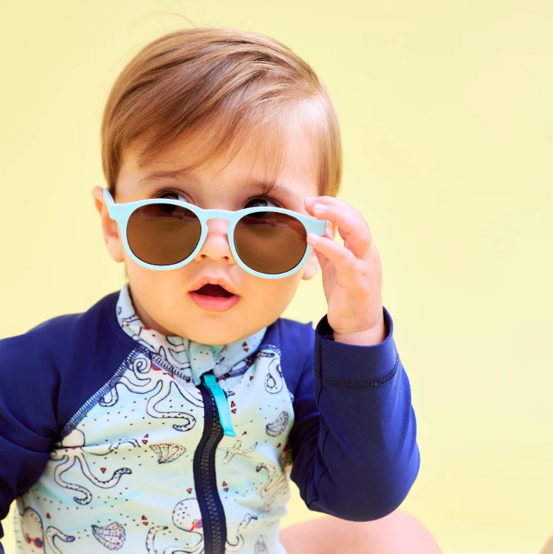 Ochelari de soare ultraflexibili pentru copii Babiators Originals Keyhole Baby Blue Amber lens 0-2 ani
