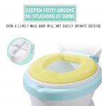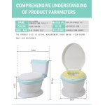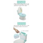 - Este prevazuta cu capac rabatabil, aceasta semanand foarte mult cu un WC clasic, pregatindu-i pe cei mici pentru pasul urmator: toaleta clasica.