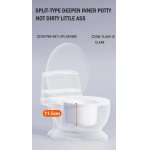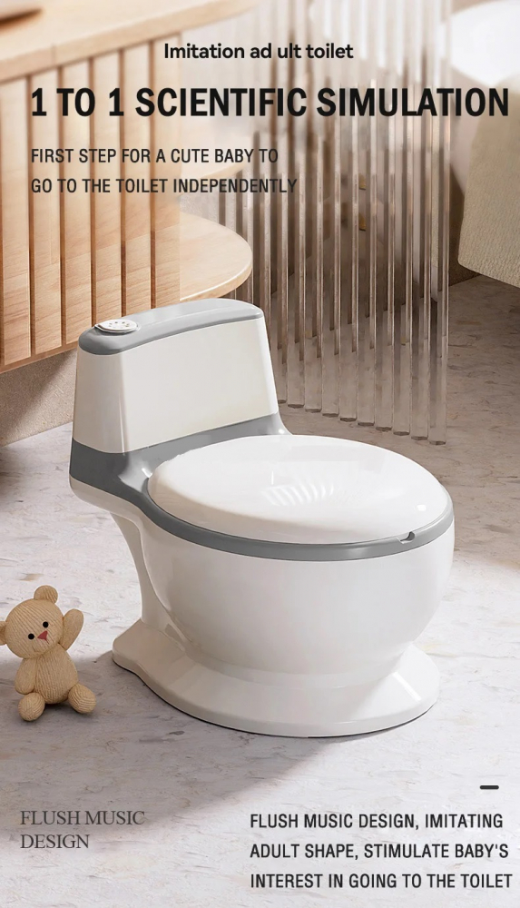 - Pentru un plus de realism, toaleta poate reda sunetul apei, astfel ca cel mic va fi incurajat si va fi 'rasplatit' cu acel sunet, dupa fiecare utilizare adecvata;