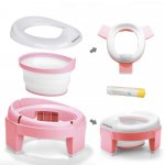 Olita pentru copii 3 in 1, NiceKids, pliabila, portabila, 26 x 27 x 15 cm, cu vas colector detasabil si gentuta de transport inclusa, 38 x 34 x 15 cm, Pink