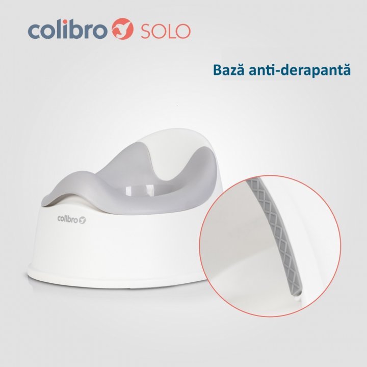 Olita pentru copii Colibro Solo, cu vas colector detasabil, forma ergonomica, picioare stabilizatoare din cauciuc, Cloud Grey