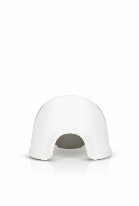 Forma sa caracteristica nu a fost aleasa intamplator. Aceasta asigura o pozitie confortabila si stabila pentru copil. Protectia pentru inghinal impiedica alunecarea copilului de pe olita, iar spatarul sporeste confortul.