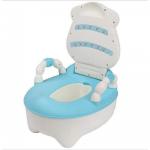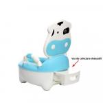 Olita pentru copii Little Mom Cow Potty Blue educationala, cu manere, vas colector detasabil, capac rabatabil, dimensiune 35 x 30 x 16 cm