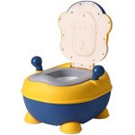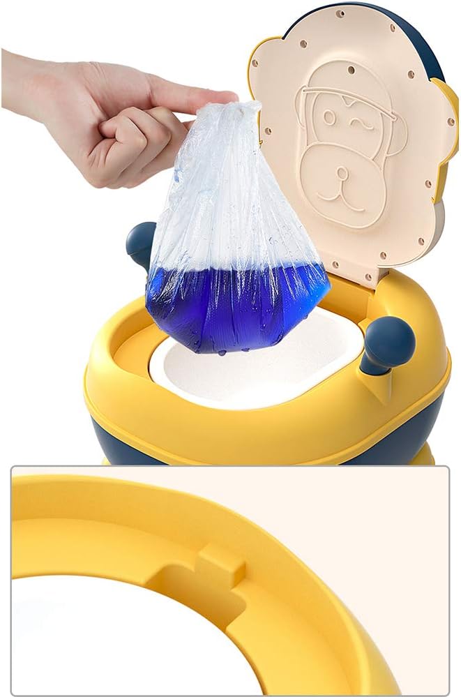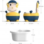 Olita pentru copii Little Mom Monkey Yellow, cu adaptor moale din spuma PU, manere laterale, capac rabatabil in 4 trepte cu functie de spatar ergonomic, cu vas colector detasabil, dimensiune 33 x 35 x 47.5 cm