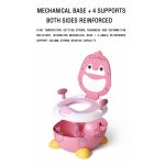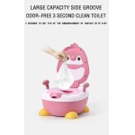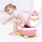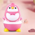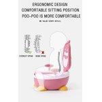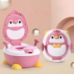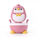Olita pentru copii Little Mom Pink Penguin, cu picioruse antiderapante ajustabile in inaltime, capac rabatabil cu functie de spatar ergonomic, cu manere de sustinere si vas colector detasabil, dimensiune 34 x 38 x 49 cm